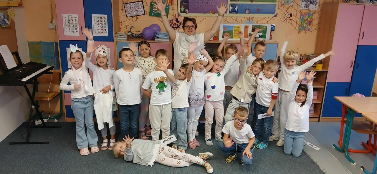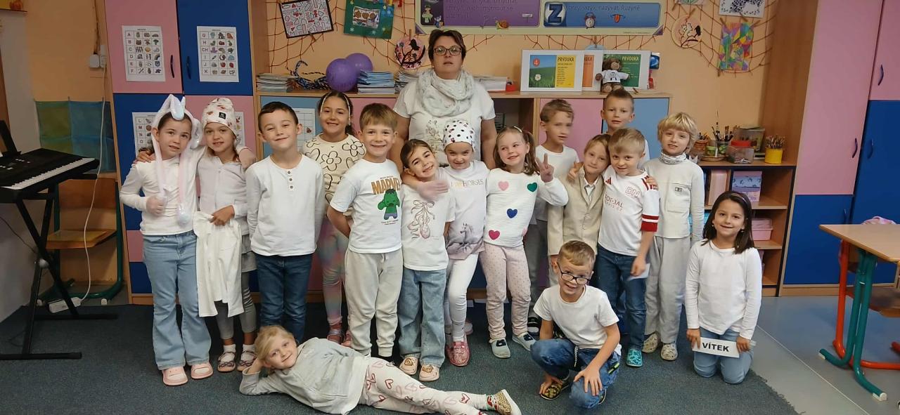 11. 11. je den, kdy očekáváme první sněhovou nadílku. V kalendáři je totiž svátek sv. Martina a nám v přístavbě každoročně nasněží, i když venku tomu tak není, je totiž "bílý den". Ve třídách to najednou vypadá jako při velké vizitě lékařů nebo na zápase judistů. Soutěžíme v počtu kusů oblečení či módních doplňků v bílé barvě. Za letošní prvňáčky vyhrála Mia a Štěpán. Ostatní bílí sněhuláčci si to dnes užili hlavně na plavání.