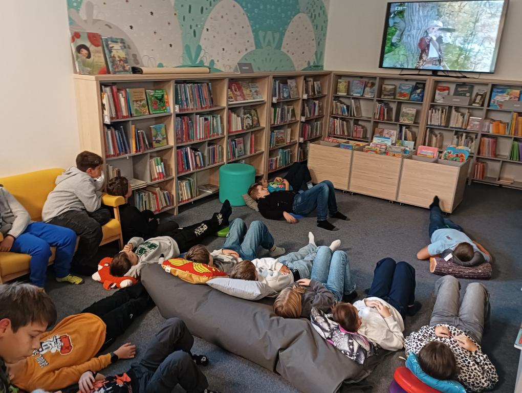 V pátek se naši čtvrťáci opět vydali do knihovny. Že už tam byli? Ano, to ano – ale tentokrát to nebylo kvůli hromadám knížek a tichému listování. Dnešní návštěva byla totiž plná hudby, pohádek a smíchu!