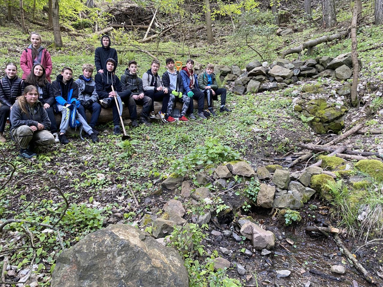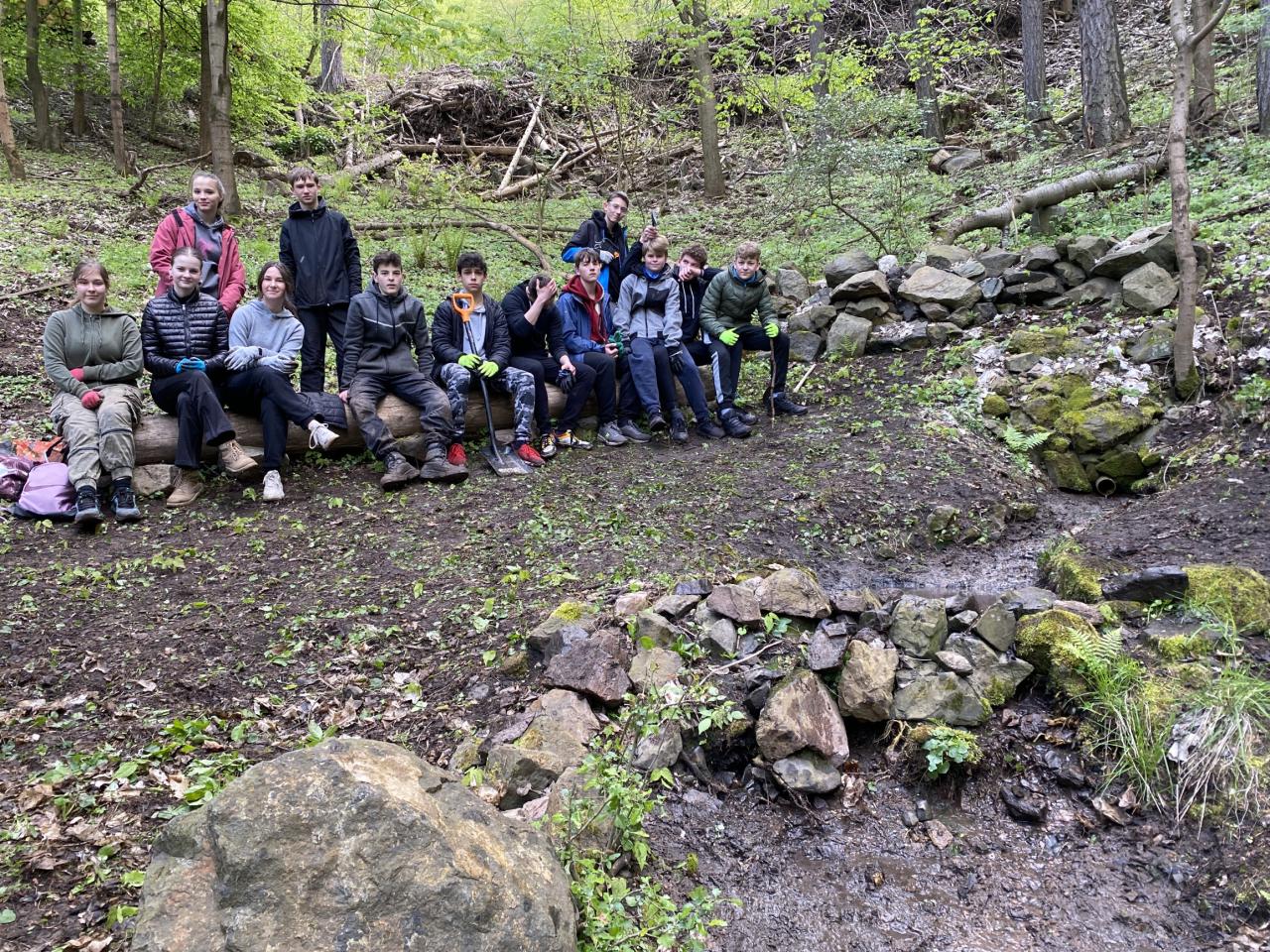Vyčistili jsme koryto, samotnou studánku i její okolí. Ronové rýhy jsme svedli tak, aby do studánky netekla voda zezhora z cesty. Pak jsme si prošli staré hornické cesty do Údolíčka.