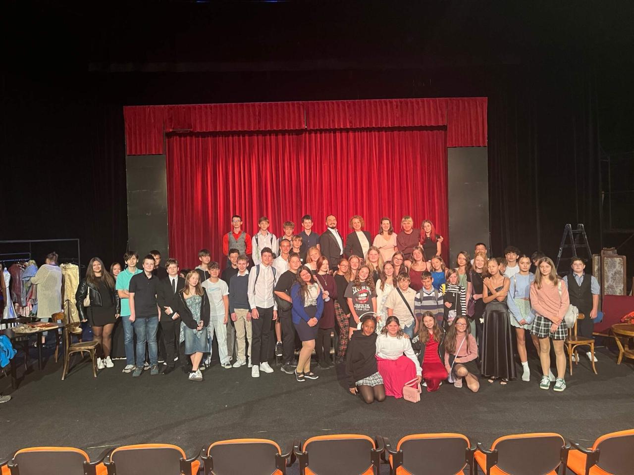 Tak přesně tohle už víme! Navštívili jsme totiž Městské divadlo Most a tam nám to herci a herečky názorně předvedli. V kabaretu napsaném podle vtipného textu Karla Čapka nám ukázali cestu od divadelního scénáře až k premiéře. Velmi vtipné a svižné představení plné písniček se nám moc líbilo - i deváťáci říkali, že to bylo nejlepší, co viděli. A nejlepší bylo, že když jsme se na konci fotili s kulisami, herci se k nám vrátili, že prý se chtějí fotit s námi!! Do mosteckého divadla jezdíme rádi a po tomto představení se tam určitě rádi vrátíme.