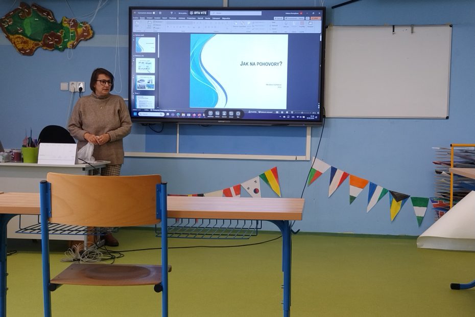 V rámci hodiny Výchovy k občanství si společně povídali, jak probíhá nábor a práce se zaměstnanci ve velkých firmách. Zabrousili také do témat vhodných způsobů komunikace s firmou, struktury životopisu, motivačního či průvodního dopisu a též rad, jak personalistu lze zaujmout či naopak spolehlivě odradit.