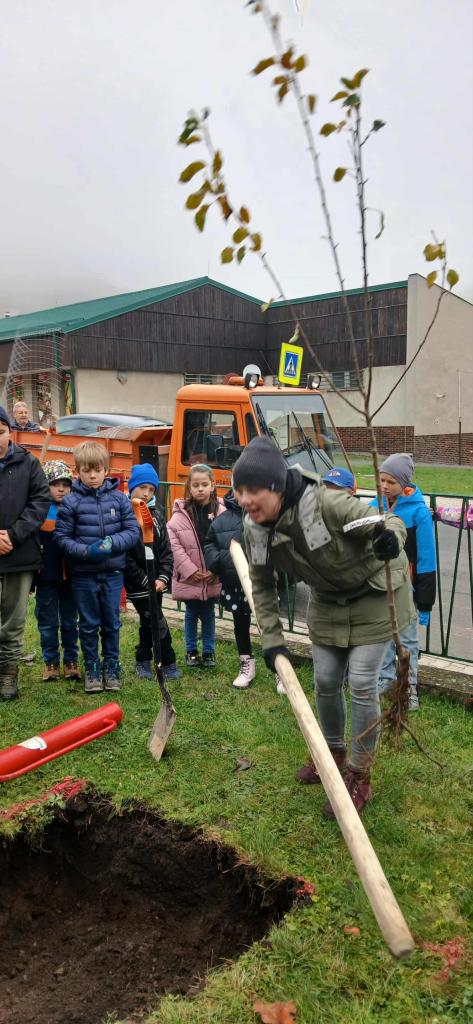V minulém týdnu se pátá třída společně s několika dalšími dobrovolníky naší školy zapojila do krásné akce sázení stromků, která proběhla ve spolupráci s obcí a organizací Sázíme stromy. Na začátku akce se děti zúčastnily krátké přednášky, při které se dozvěděly, jak správně stromky sázet a jak o ně pečovat. Práce nebyla jednoduchá, ale děti pracovaly na plný plyn, pomáhaly si navzájem a vydržely téměř do konce.