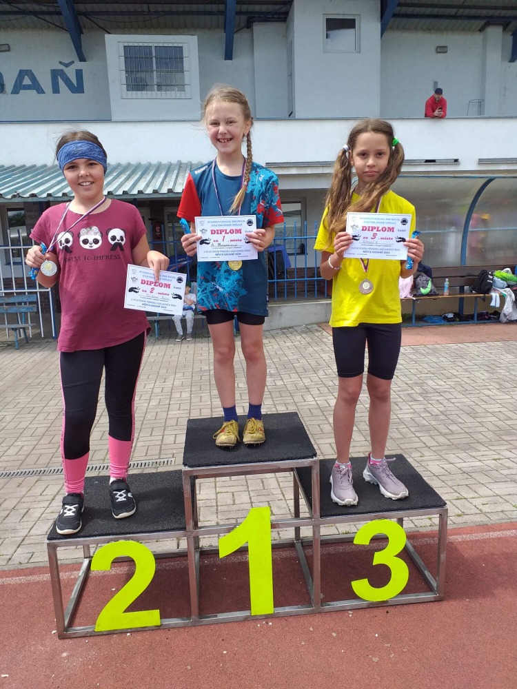 Ve středu 12. 6. 2024 se za slunečného počasí na atletickém stadionu FK Tatran uskutečnily atletické závody škol z Kadaně a Perštejna. Naši školu reprezentovalo 29 žáků a žákyň ve všech kategoriích, od předžactva až po dorost. Získali celkem 30 medailí! V dopoledním programu ti starší vyhráli 5 medailí, odpoledne přidali mladší spolužáci 25 medailí. Ze stadionu odcházeli šťastní, usměvaví a spokojení závodníci s medailemi na krku.
