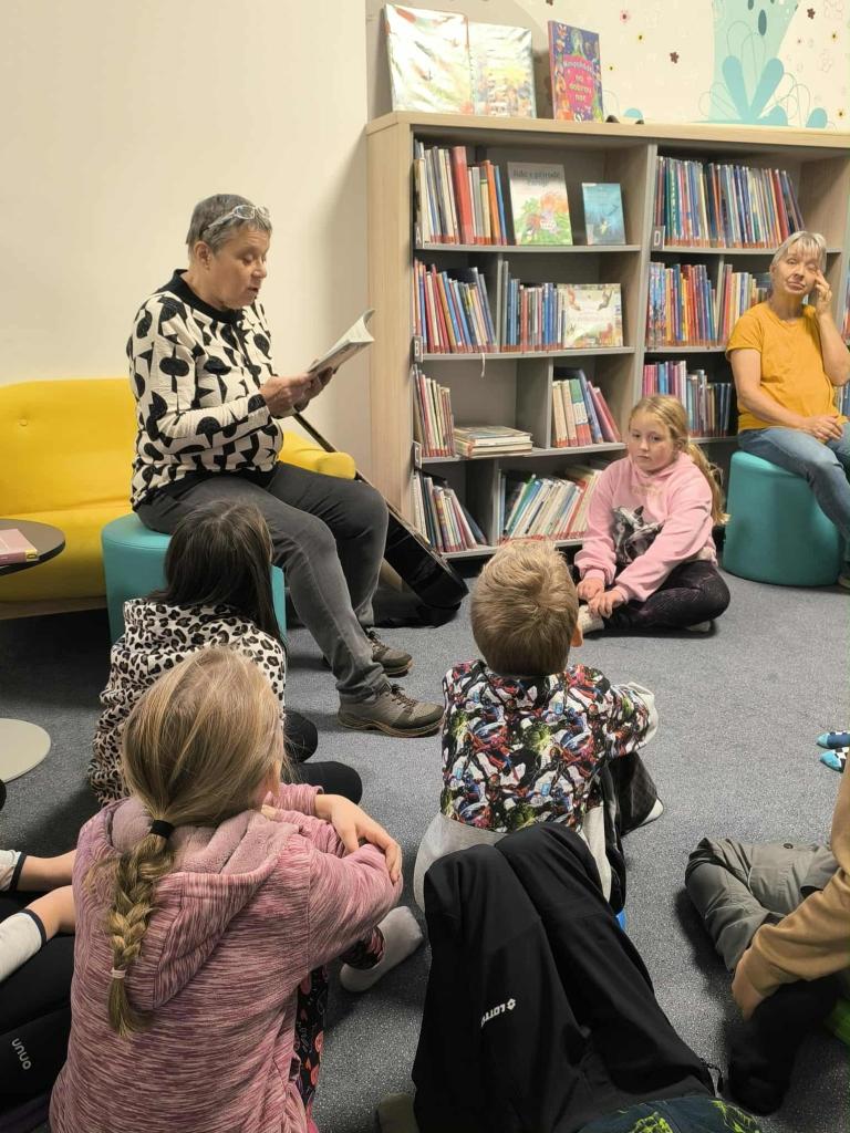 Ve čtvrtek jsme se těšili do knihovny, protože tam na nás čekalo překvapení. Četla nám ze svých knih paní spisovatelka Hana Doskočilová. Zažili jsme příběhy její jezevčice Molinky a dalších zvířátek ze záchranné stanice. Také jsme si zazpívali a zatančili s kytarou. Koupili jsme si v "Oplatce" dobrůtky a vyrazili na pěší túru domů zpět do Perštejna.