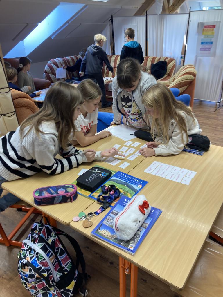 V pátek 3. 10. jsme si připravili hodinu prvouky pro čtvrťáčky na téma kraje České republiky. Pracovali jsme ve skupinách a na chvíli si vyzkoušeli roli učitele a průvodce. Musíme říct, že to bylo fajn. Další vyučovací hodinu, kde jsme si procvičili matematiku a český jazyk, si pro nás naopak připravili oni. Myslíme, že si takový hezký pátek brzy zopakujeme.