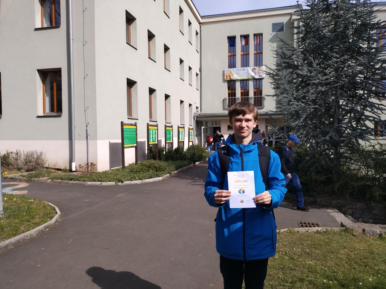 Gratuluji a zároveň děkuji Michalovi za příkladnou reprezentaci naší školy.